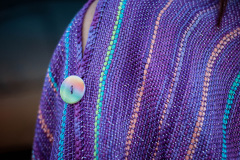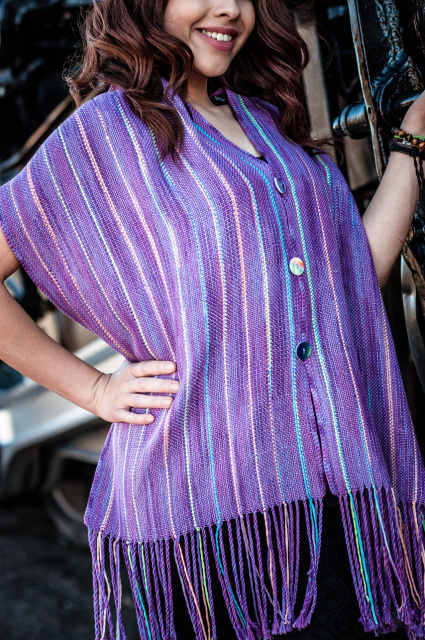 This lovely wrap is soft and light, and drapes beautifully! It’s woven with an added crocheted border with button loops (optional). It can be worn three ways; as a scarf, button it up and wear it off one shoulder or with the buttons on the front like a vest. If you don’t crochet, you may choose to hand or machine stitch the ribbon on as button loops. Or sew the buttons on permanently. This pattern will walk you through each step of the process.